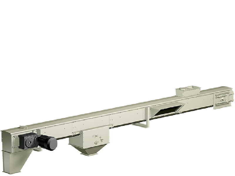PETKUS Round Bottom Conveyors are used for the gentle horizontal transport of free flowing bulky products, e.g. grain, pulses, oilseed and similar agricultural products. The universally designed conveyor troughs made of galvanized sheet steel can be configured as required. Various types with different trough widths and heights are available, offering output rates between 50 and 100 t/h at a chain speed of up to 0.5 m/s. The maximum conveying length is 50 m.